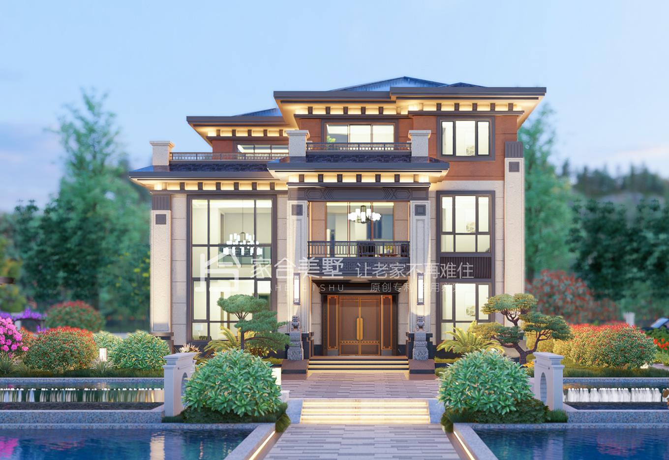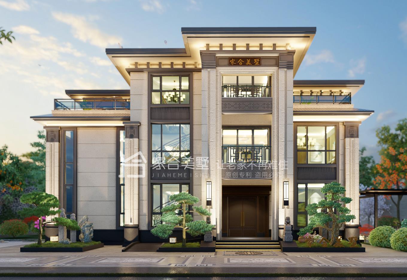 • 家合美墅J53002雅致带电梯五开间新中式农村自建别墅